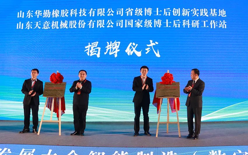 并舉行了國家級博士后科研工作站揭牌儀式,王慶書記為山東天意機械股份有限公司國家級博士后科研工作站揭牌,天意機械董事長劉洪彬參加了揭牌儀式。