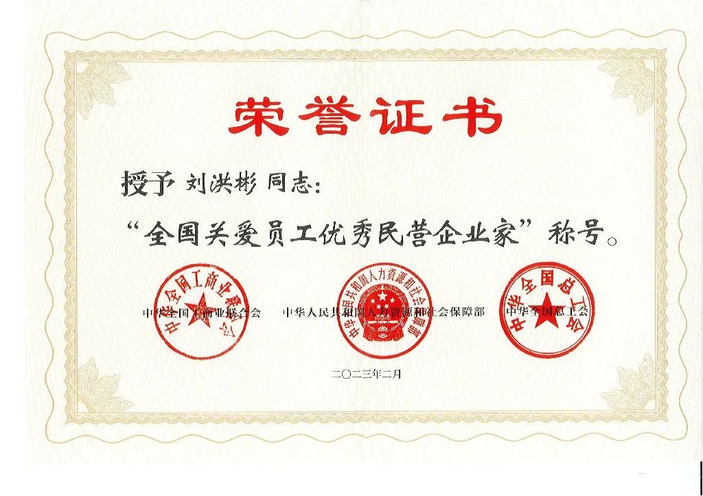 喜報丨劉洪彬董事長入選全國工商聯(lián)、人社部、全國總工會編撰全國關(guān)愛員工優(yōu)秀民營企業(yè)家事跡材料