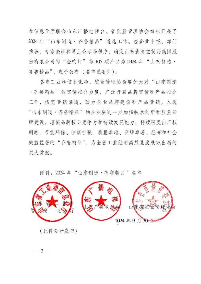 近日,山東省工信廳公布了2024年“山東制造·齊魯精品”名單,