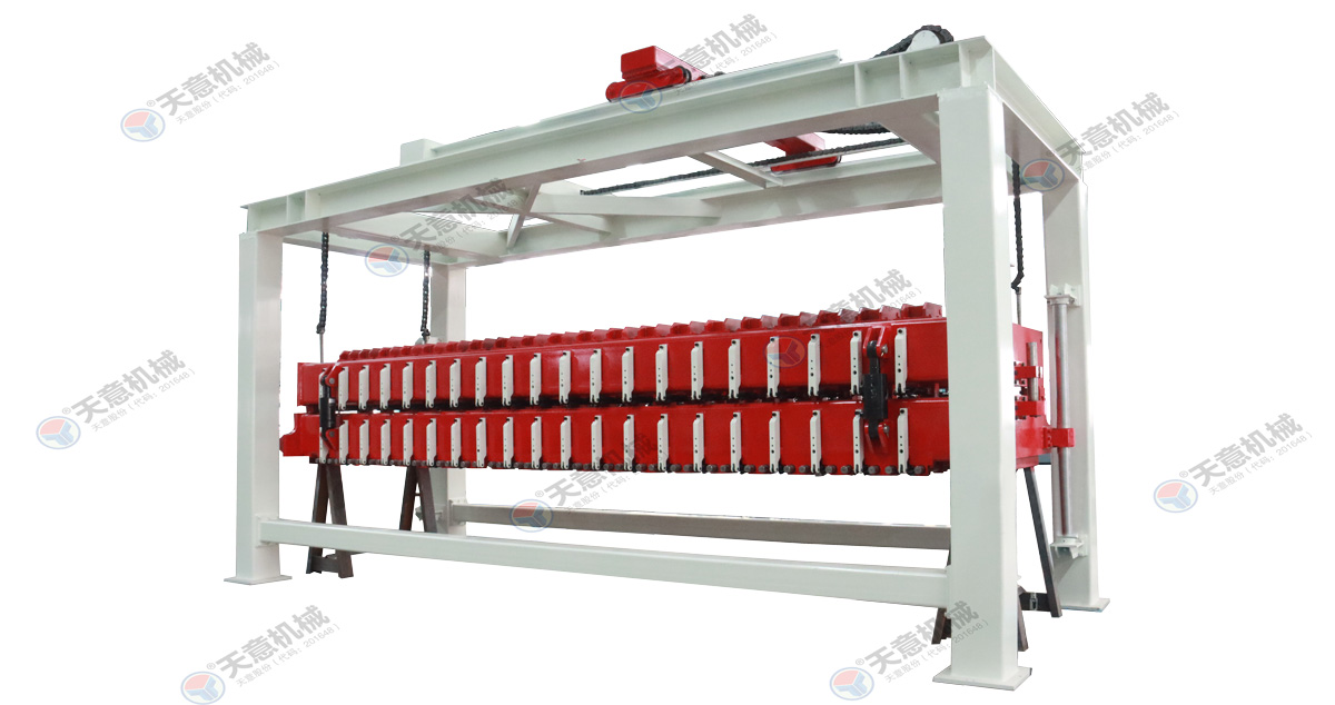坯體經(jīng)過發(fā)泡靜停達到切割要求后模具轉(zhuǎn)移至切割區(qū),由翻轉(zhuǎn)機分離模具并將坯體翻轉(zhuǎn)90度放到蒸養(yǎng)小車上,然后經(jīng)過切割工序?qū)ε黧w進行側(cè)面切割刨槽及水平和垂直分割,使之達到外觀尺寸要求,切割工作可以機械化進行也可人工操作,這道工序直接決定ALC板材的制品外觀質(zhì)量以及某些內(nèi)在質(zhì)量。