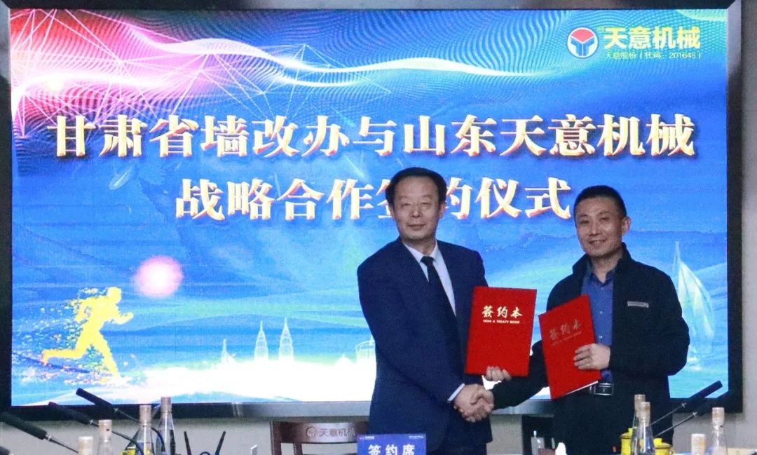 同時(shí),甘肅省墻改辦、甘肅省企業(yè)分別與天意機(jī)械簽訂了戰(zhàn)略合作協(xié)議,將進(jìn)一步提升合作層次,有效拓展合作深度和廣度。