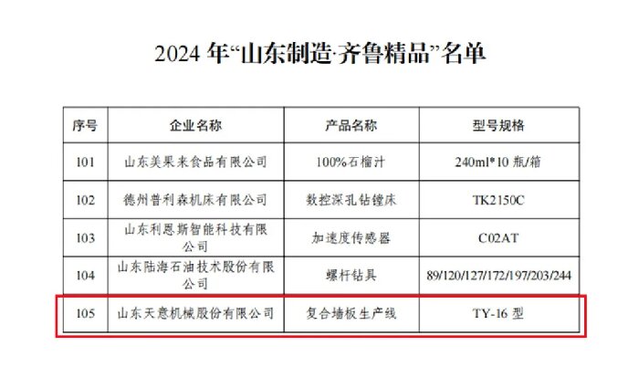 喜報(bào)丨天意機(jī)械裝配式建筑智能裝備榮獲2024年“山東制造·齊魯精品”