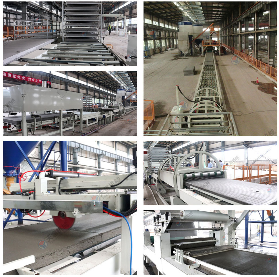 成型輸送線(xiàn)主要由上板輸送線(xiàn)、成型輸送線(xiàn),加速整理輸送線(xiàn)及送板主機(jī)、布料主機(jī)、刮平裝置、玻纖網(wǎng)格布架等組成,主要功能是把漿料鋪設(shè)在EPS基板上并完成產(chǎn)品的成型,且輔助完成兩端雙工位碼垛機(jī)的上下架。