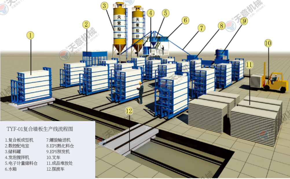 TYF-01型立式復(fù)合墻板生產(chǎn)線,設(shè)備占地面積小,產(chǎn)品一次成型,產(chǎn)量高。主機配有自動行走系統(tǒng),設(shè)備運轉(zhuǎn)更簡單快捷,大型固定式攪拌設(shè)備,攪拌料漿更均勻,澆注效率更高。